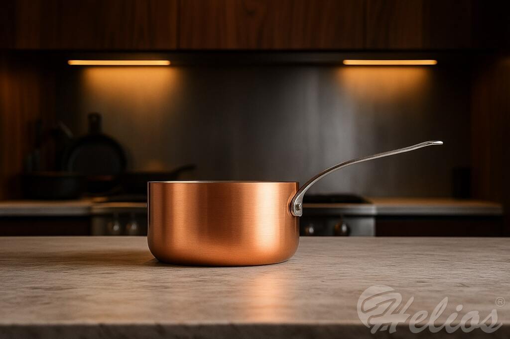 Każda kuchnia, która aspiruje do bycia tą z górnej półki, ma w swoich zasobach garnek firmy Mauviel 1830. Jeśli nie to polecamyrondel 16 cm lub rondel 18 cm. To garnki, które są multifunkcyjne. Służą do podgrzewania małych ilości potraw, przygotowywania budyniów, polew, sosów, smażenia małych porcji w głębokim tłuszczu. W rondlu rozpuszcza się czekoladę, masło i odparowuje się płyny z potraw. Ten typ garnka jest nadzwyczaj uniwersalny. Rondel z Mauviel 1830 z powłoką miedzianą jest też pięknym naczyniem wspaniale prezentującym się nie tylko w kuchni, ale też w czasie serwowania potraw.